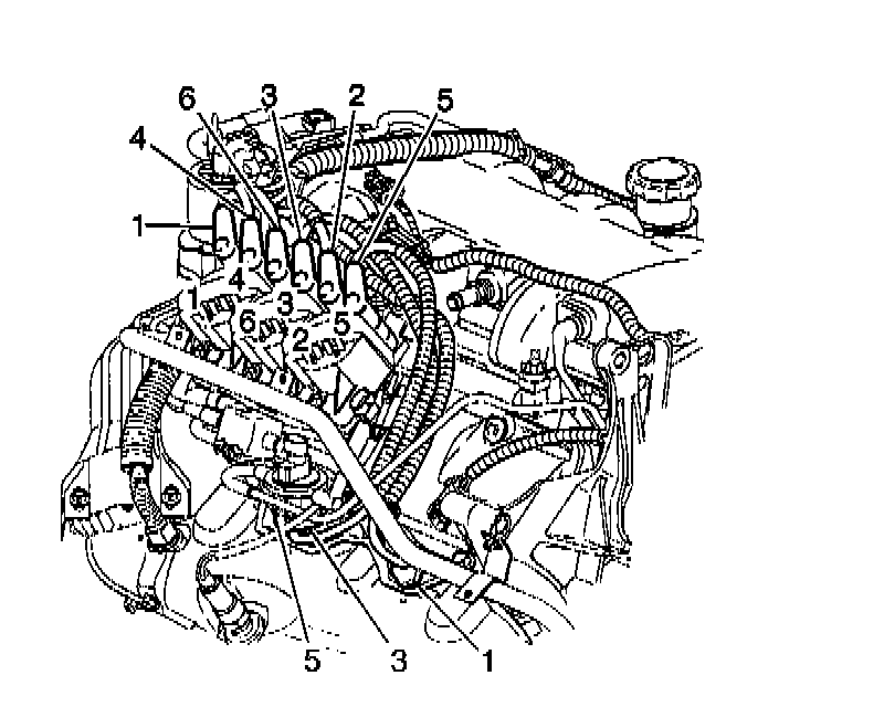 3. Install the spark plug wires 1, 3, and 5 to the engine right side spark plugs.