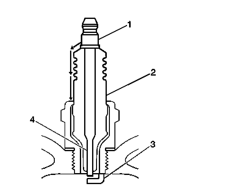 - Inspect for the correct spark plug torque. Refer to Ignition System Specifications. Insufficient torque can prevent correct spark plug operation. An over torqued spark plug causes the insulator (2) to crack.