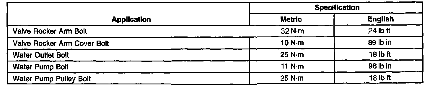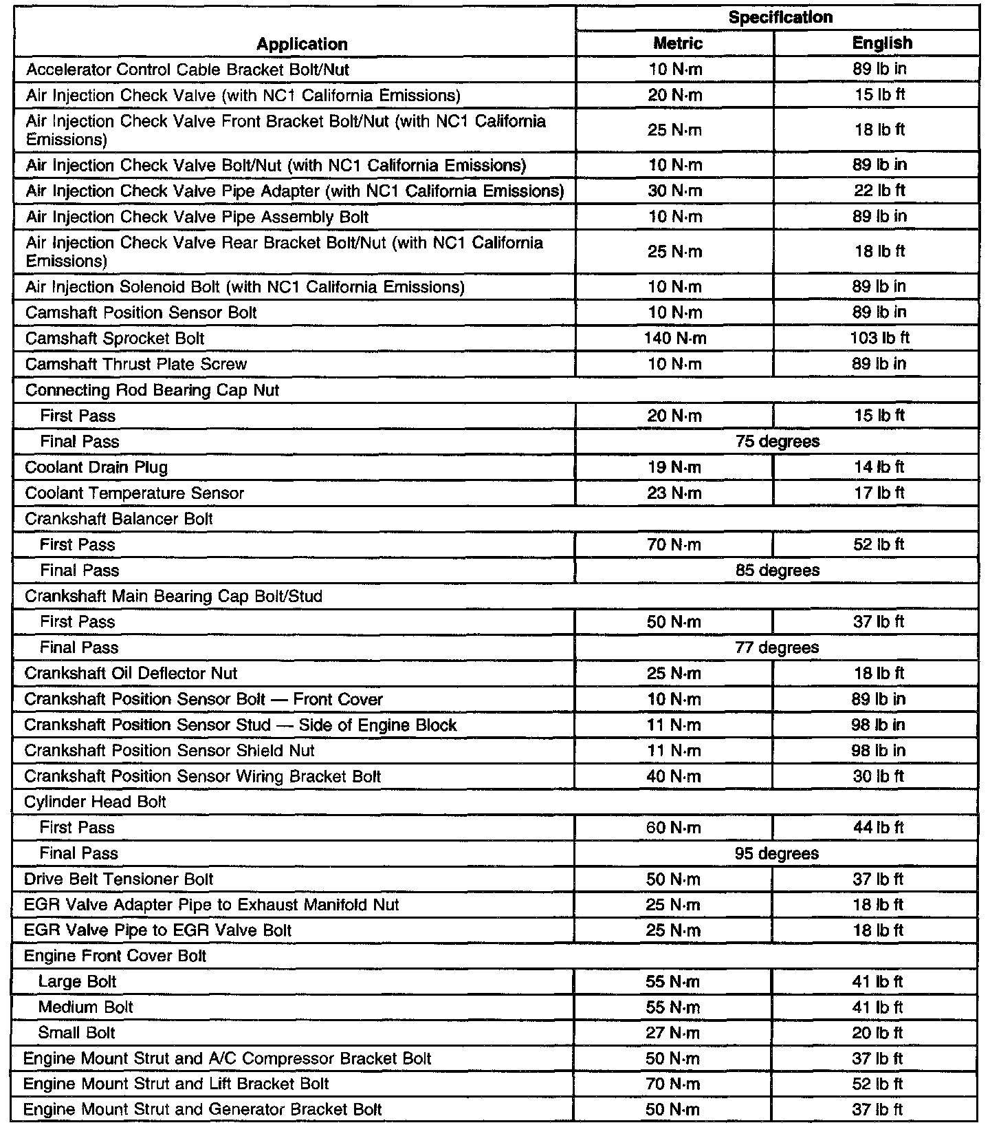 Engine Fastener Tightening Specifications