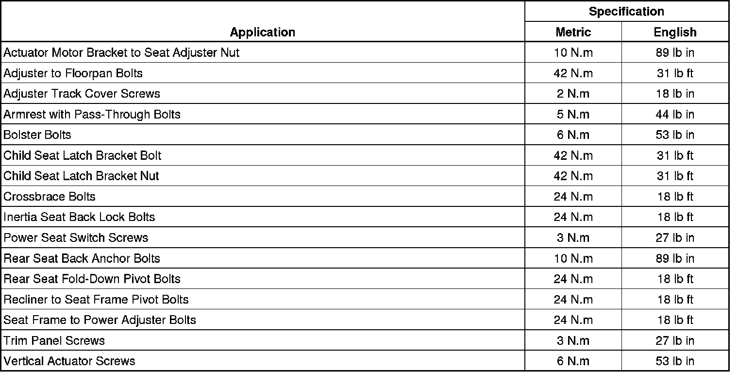 Seats: Specifications