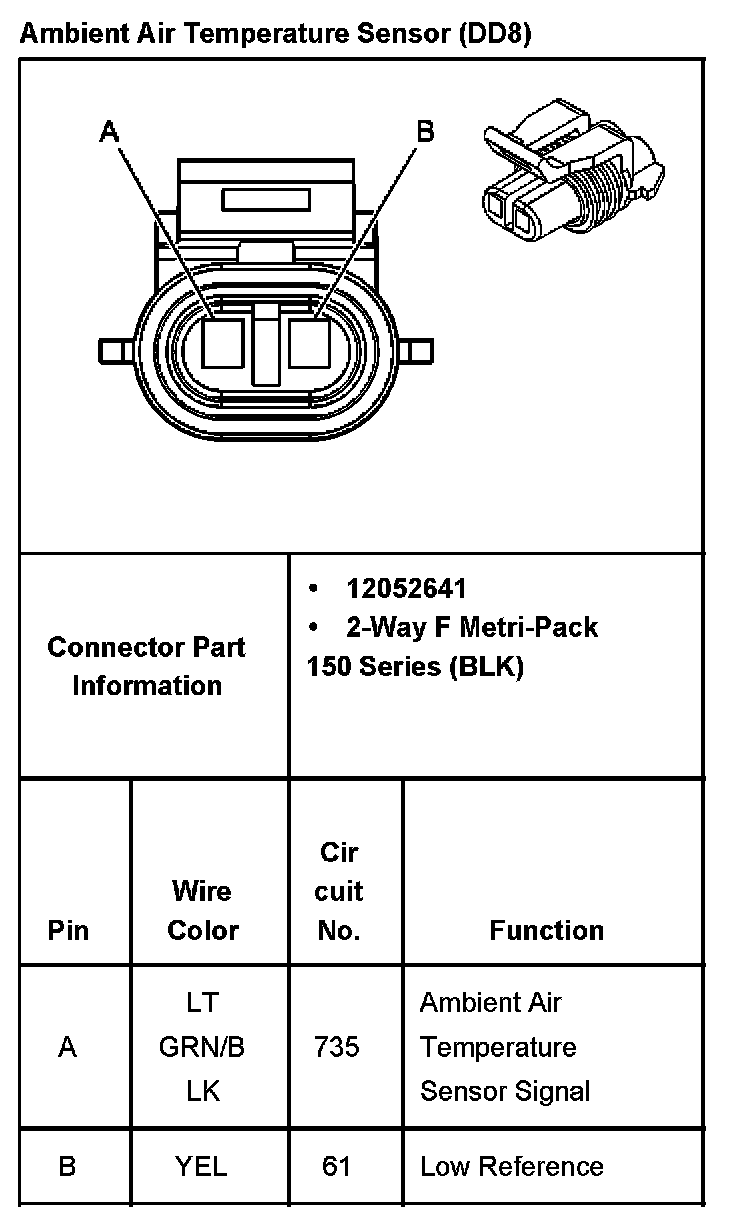 Ambient Air Temperature Sensor With RPO Code DD8:
