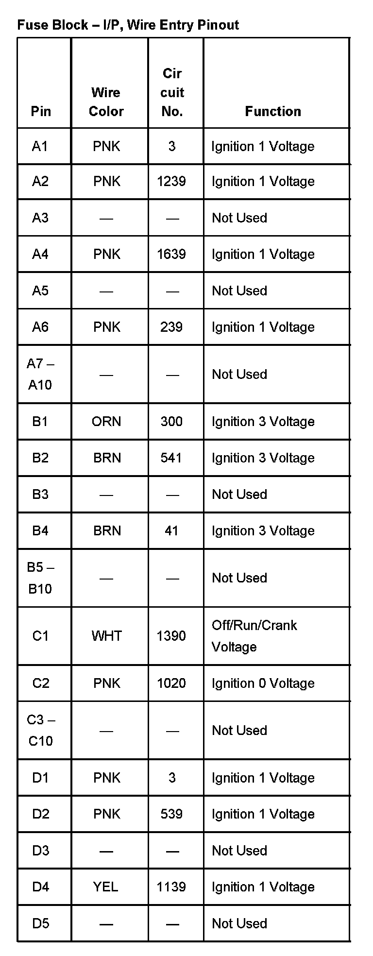 Fuse Block - I/P, Wire Entry Pinout Part 2: