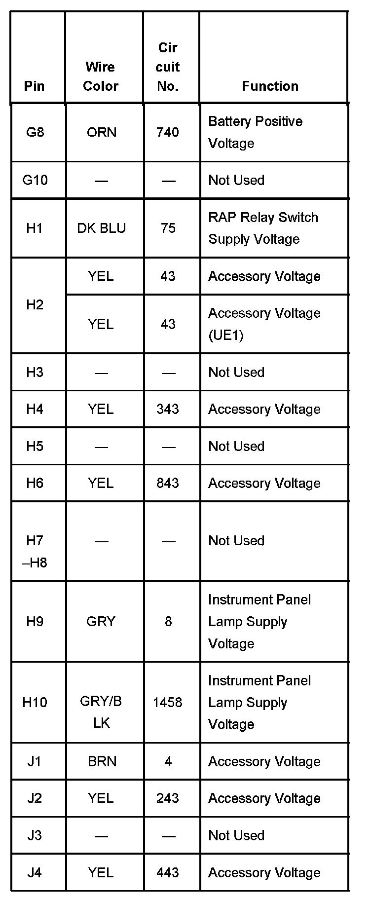 Fuse Block - I/P, Wire Entry Pinout Part 4: