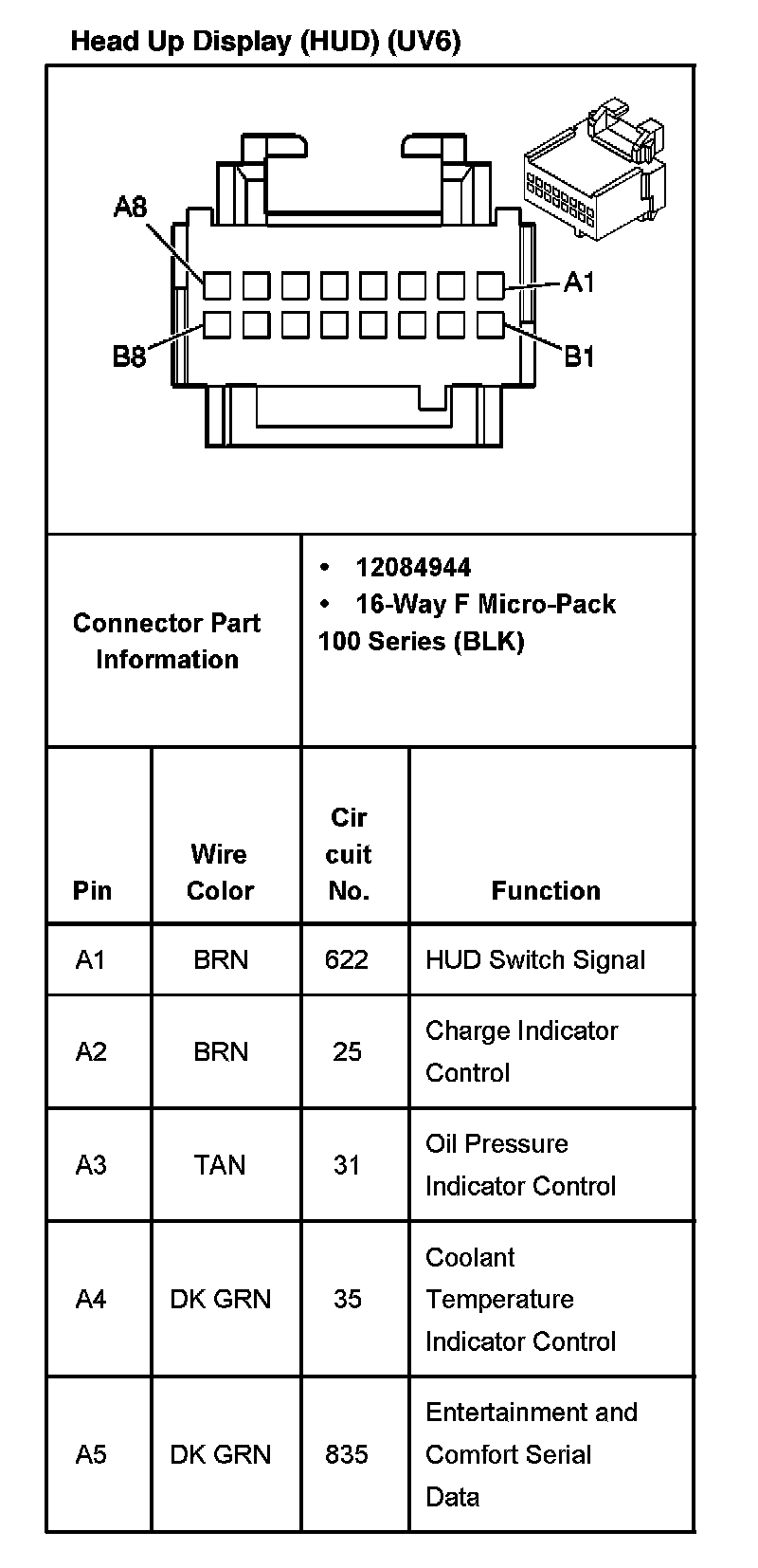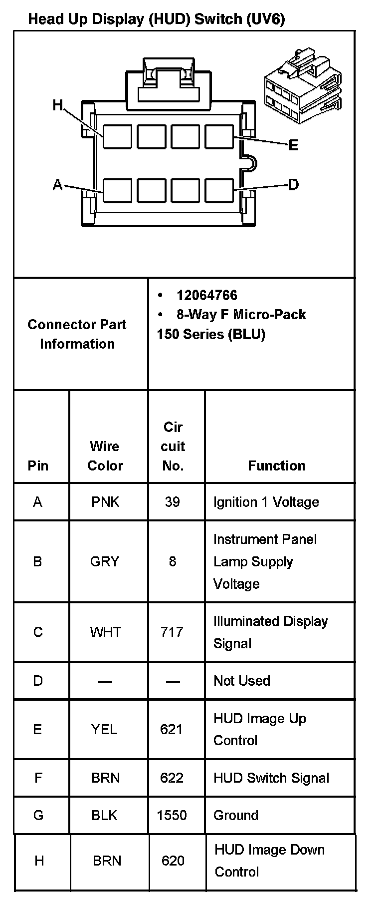 Head Up Display (HUD) Switch (With RPO Code UV6):
