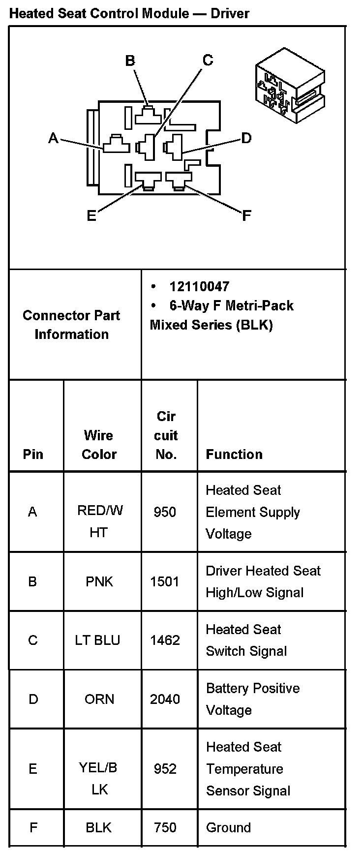 Heated Seat Control Module - Driver: