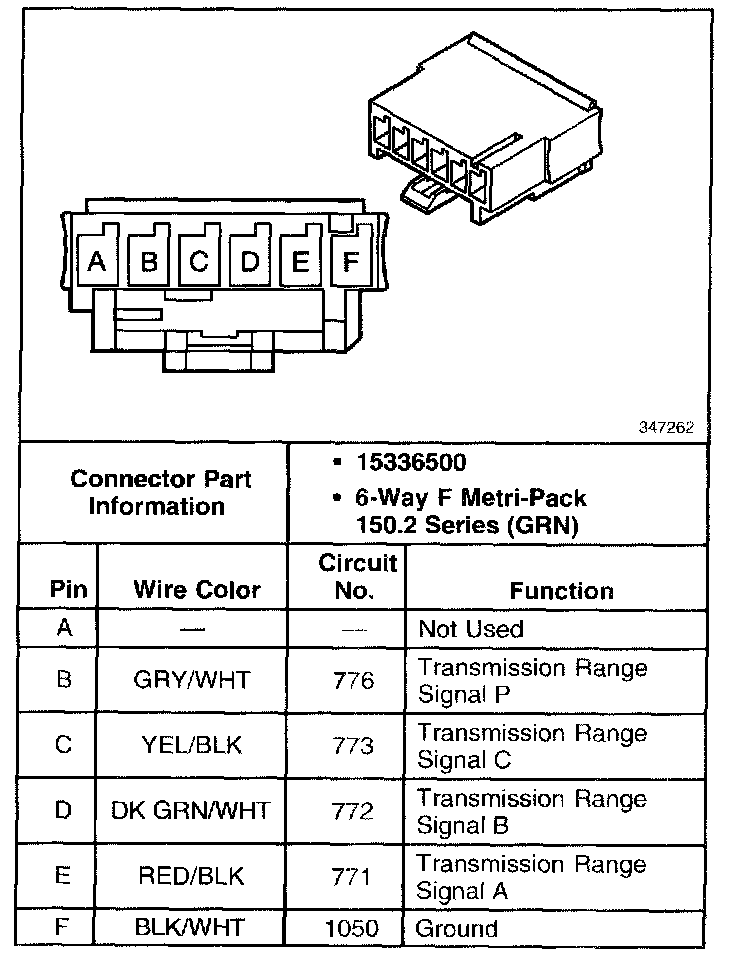 Transmission Internal Mode Switch Connector, Wiring Harness Side: