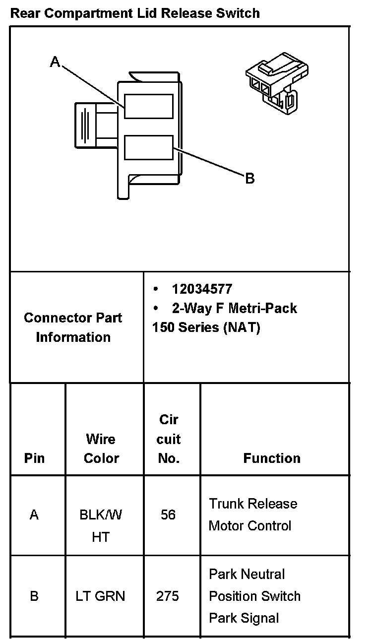 Rear Compartment Lid Release Switch: