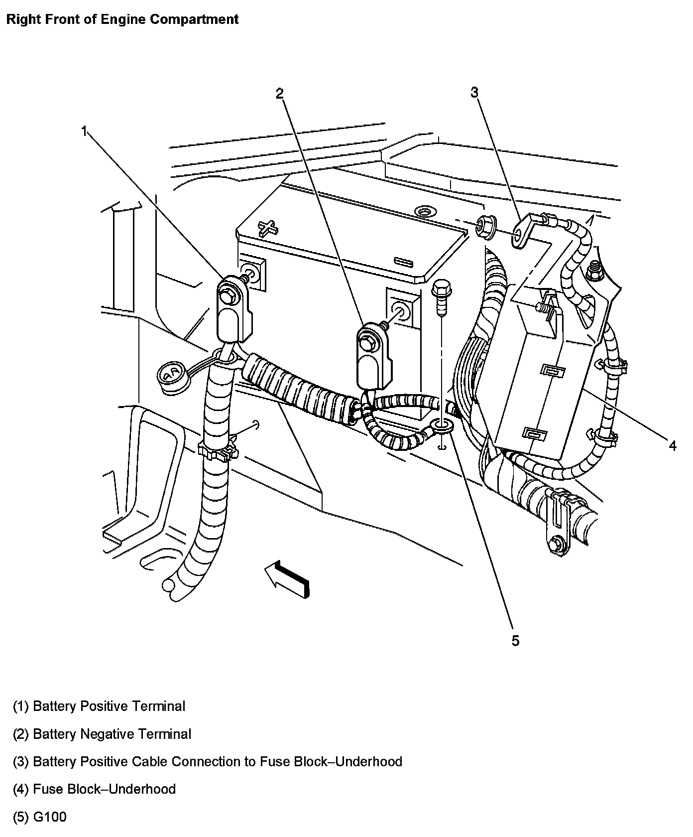 Right Front Of Engine Compartment: