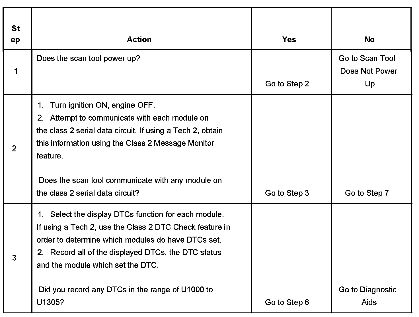 2. A partial malfunction in the class 2 serial data circuit uses a different procedure from a total malfunction of the class 2 serial data circuit.