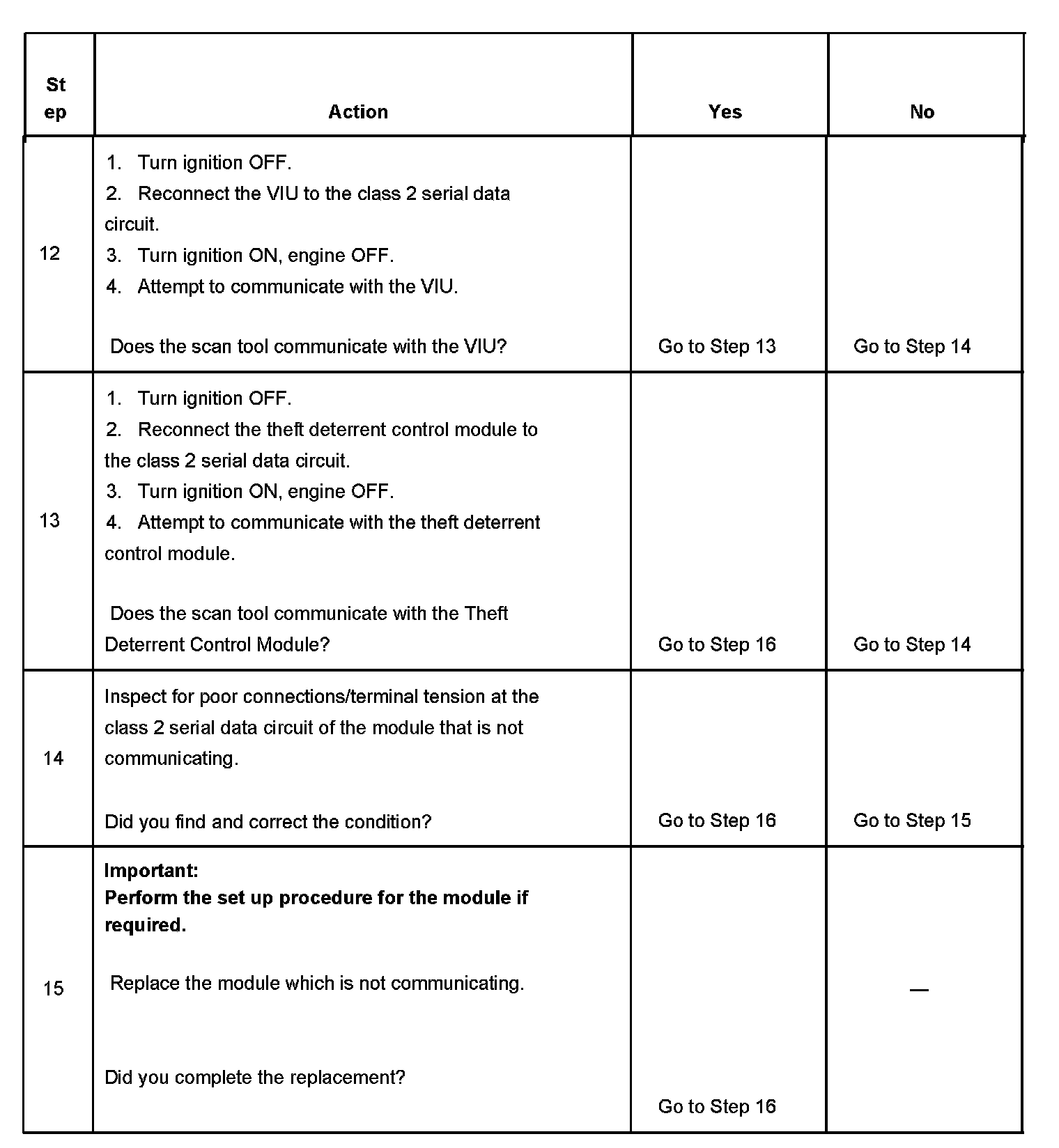 13. This test isolates the theft deterrent control module class 2 serial data circuit.