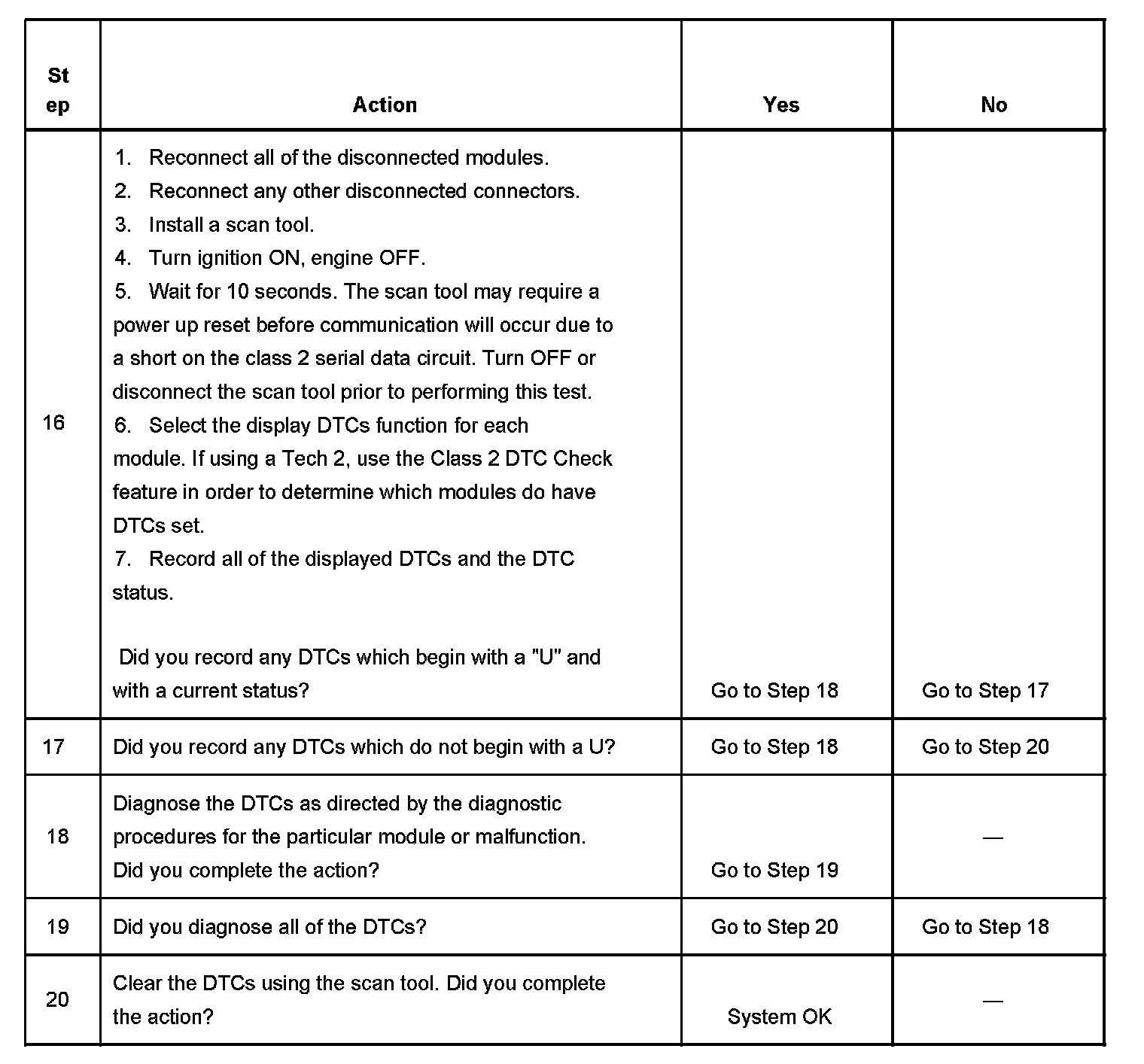 16. If there are no current DTCs that begin with a "U", the communication malfunction has been repaired.
