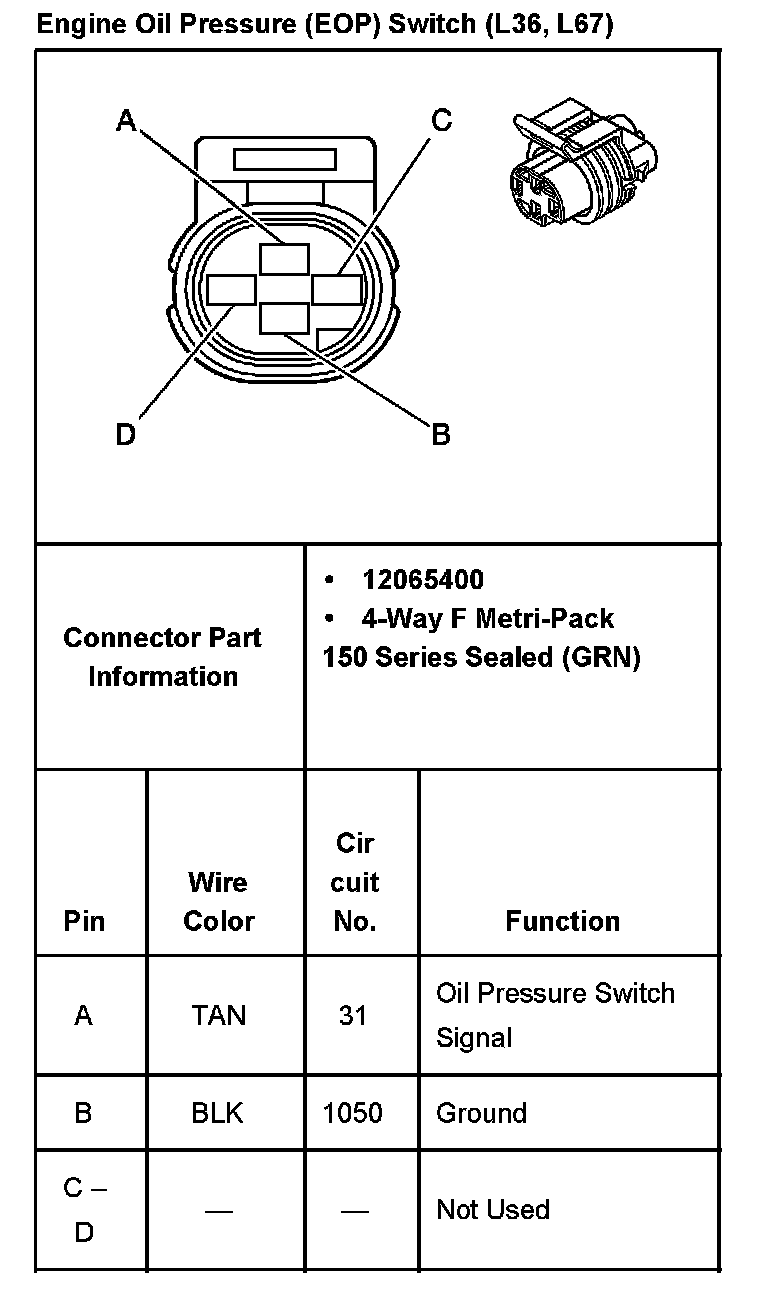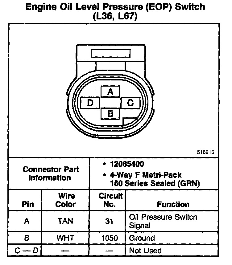 Engine Oil Level Pressure (EOP) Switch (L36, L67):