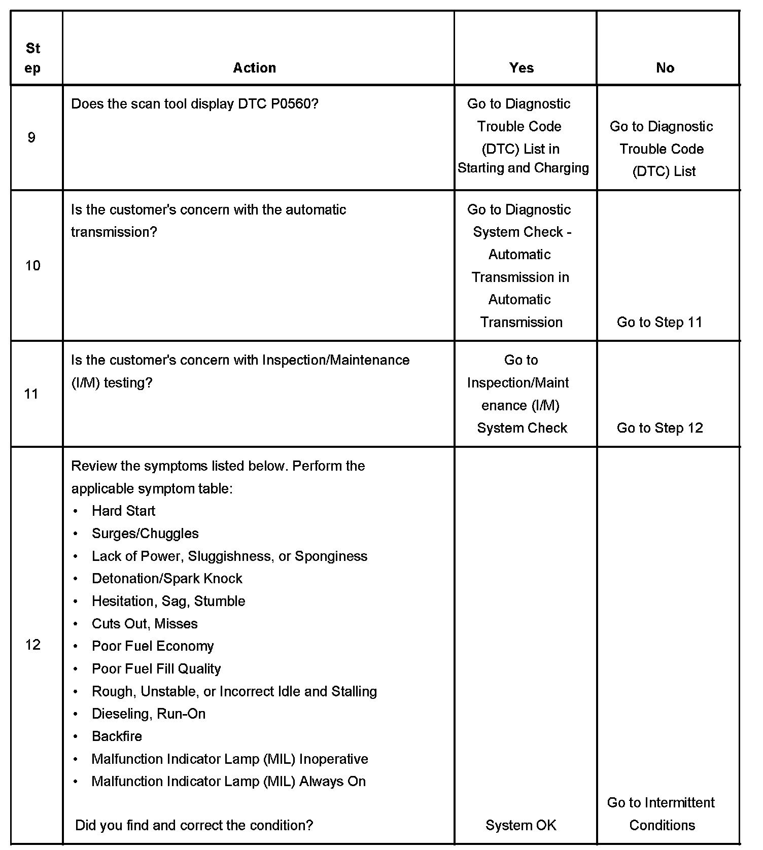 DESCRIPTIONThe Diagnostic System Check is an organized approach to identifying a condition created by an electronic engine control system malfunction. The Diagnostic System Check must be the starting point for any driveability concern. The Diagnostic System Check directs the service technician to the next logical step in diagnosing the concern. Understanding the table and using the table correctly reduces diagnostic time and prevents the replacement of good parts.