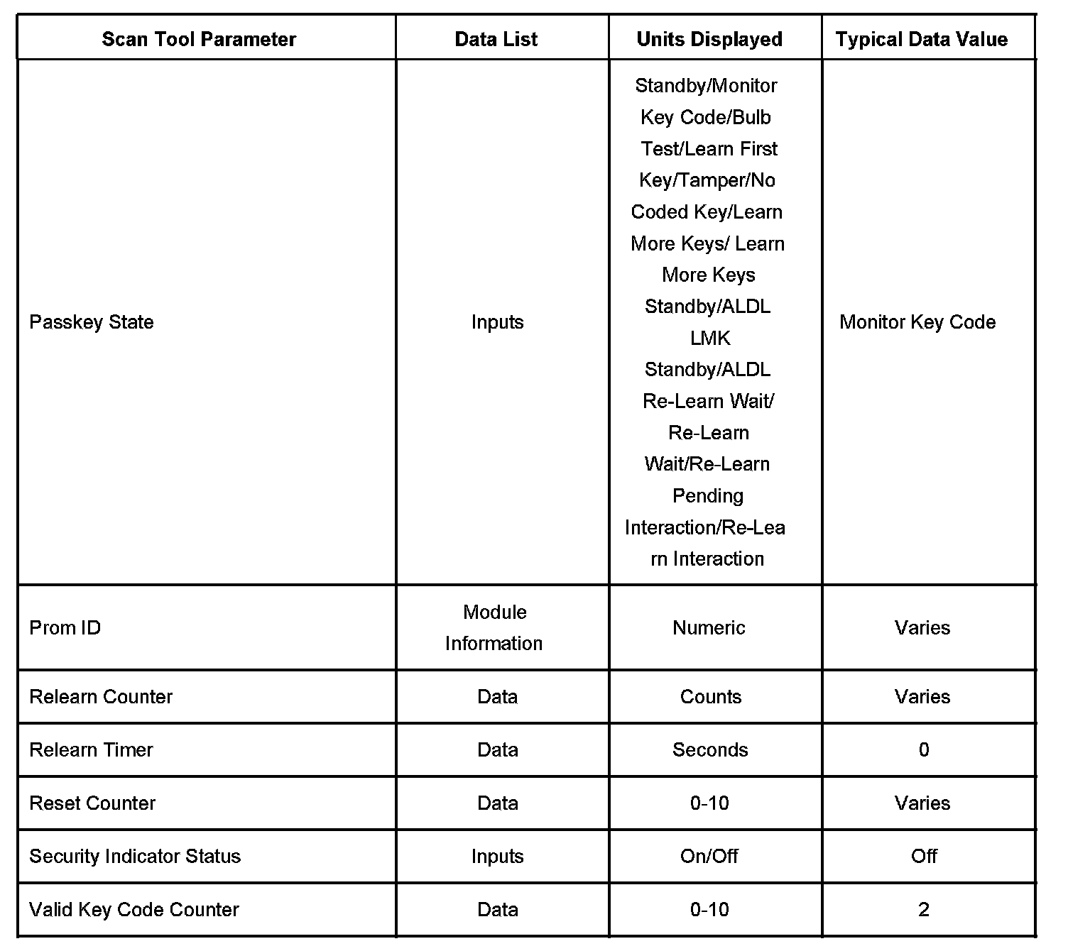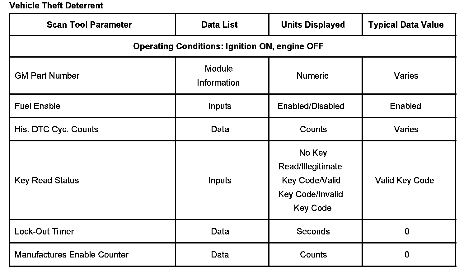 Scan Tool Data List - Antitheft System