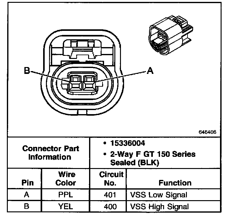 Vehicle Speed Sensor Connector, Wiring Harness Side: