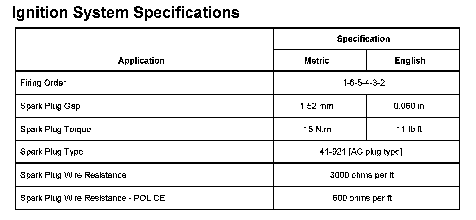 Ignition System Specifications: