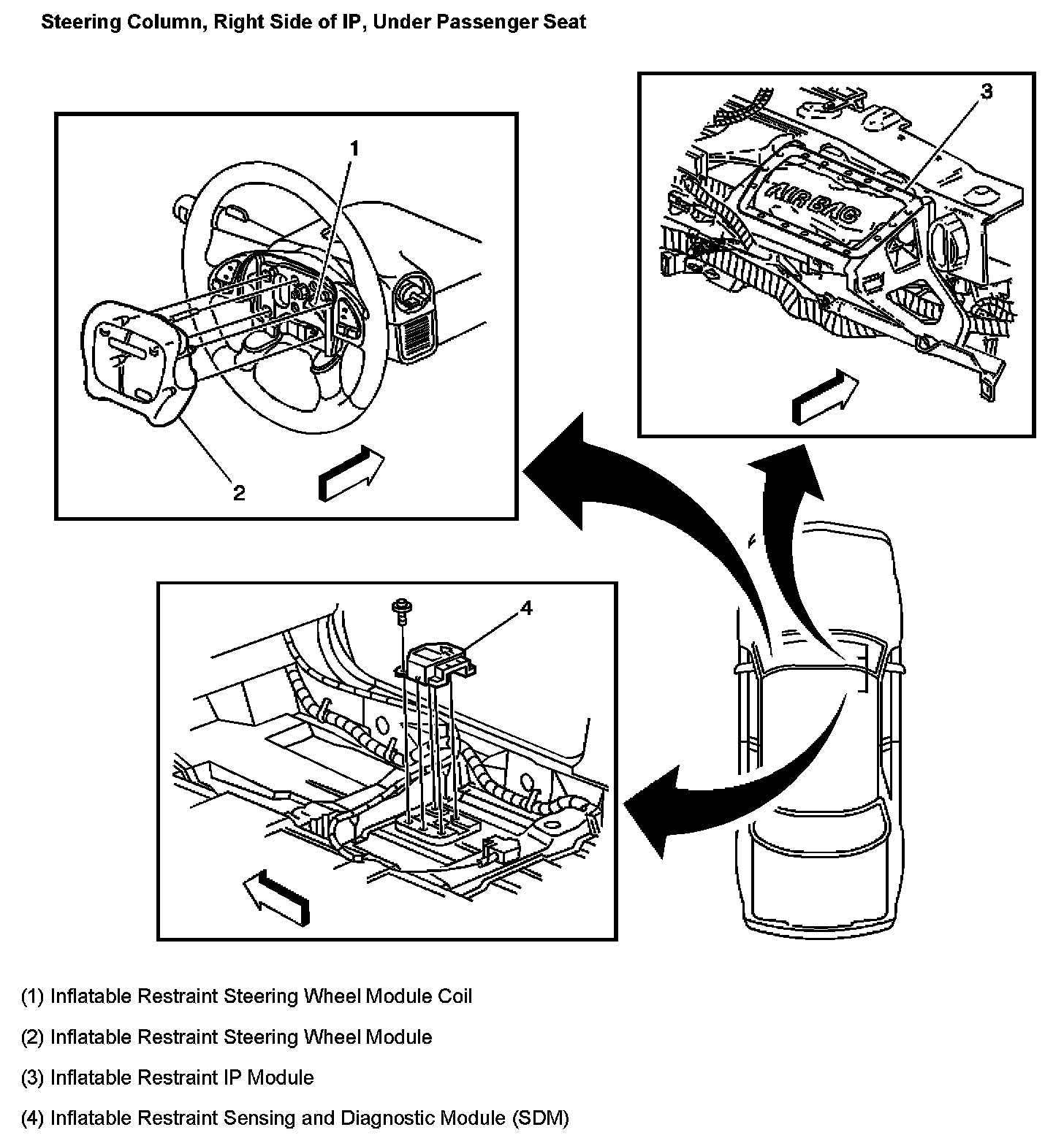 Steering Column, Right Side Of IP, Under Passenger Seat: