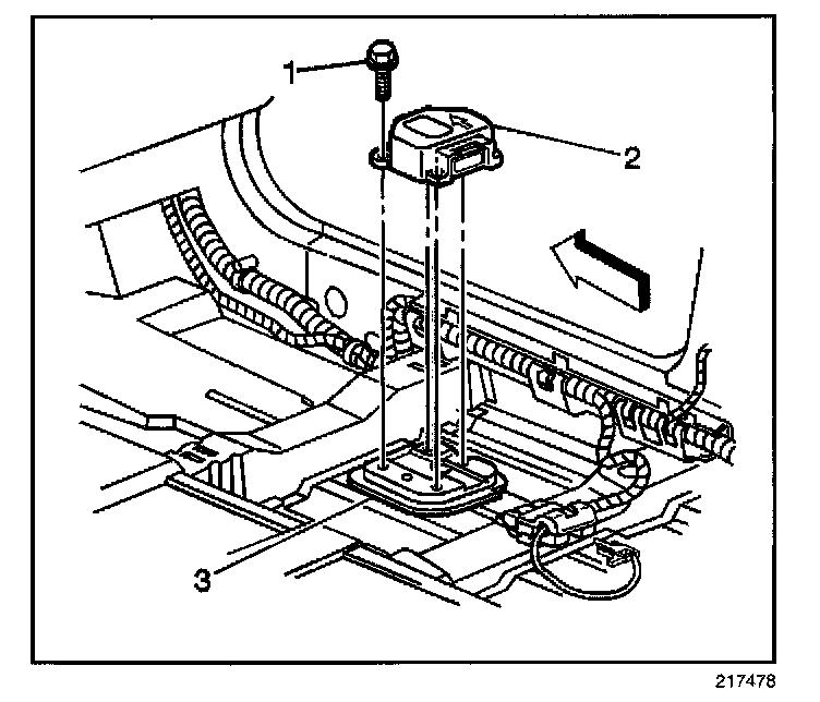 2. Install the SDM (2) horizontally to the floor pan (3).