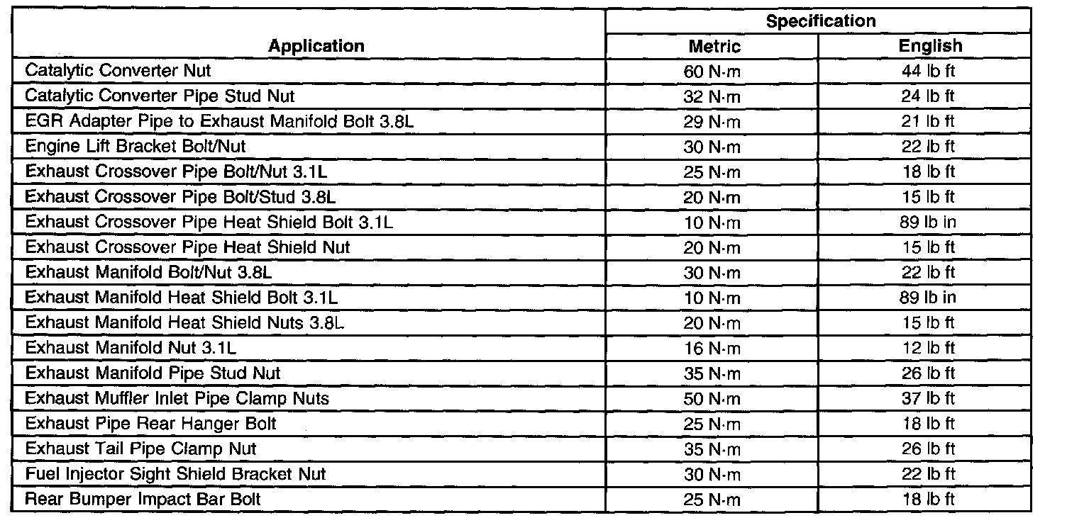 Fastener Tightening Specifications: