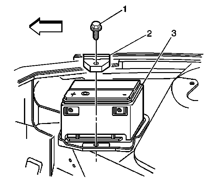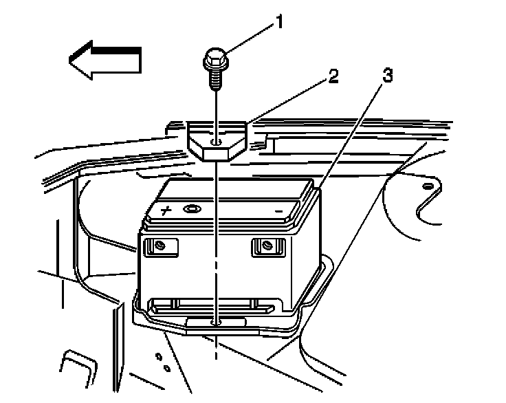 4. Remove the retainer bolt (1) that holds the battery in place.