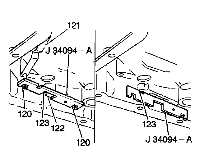 5. Use the J34094-A to set the height of the second pin (120) and the washer.