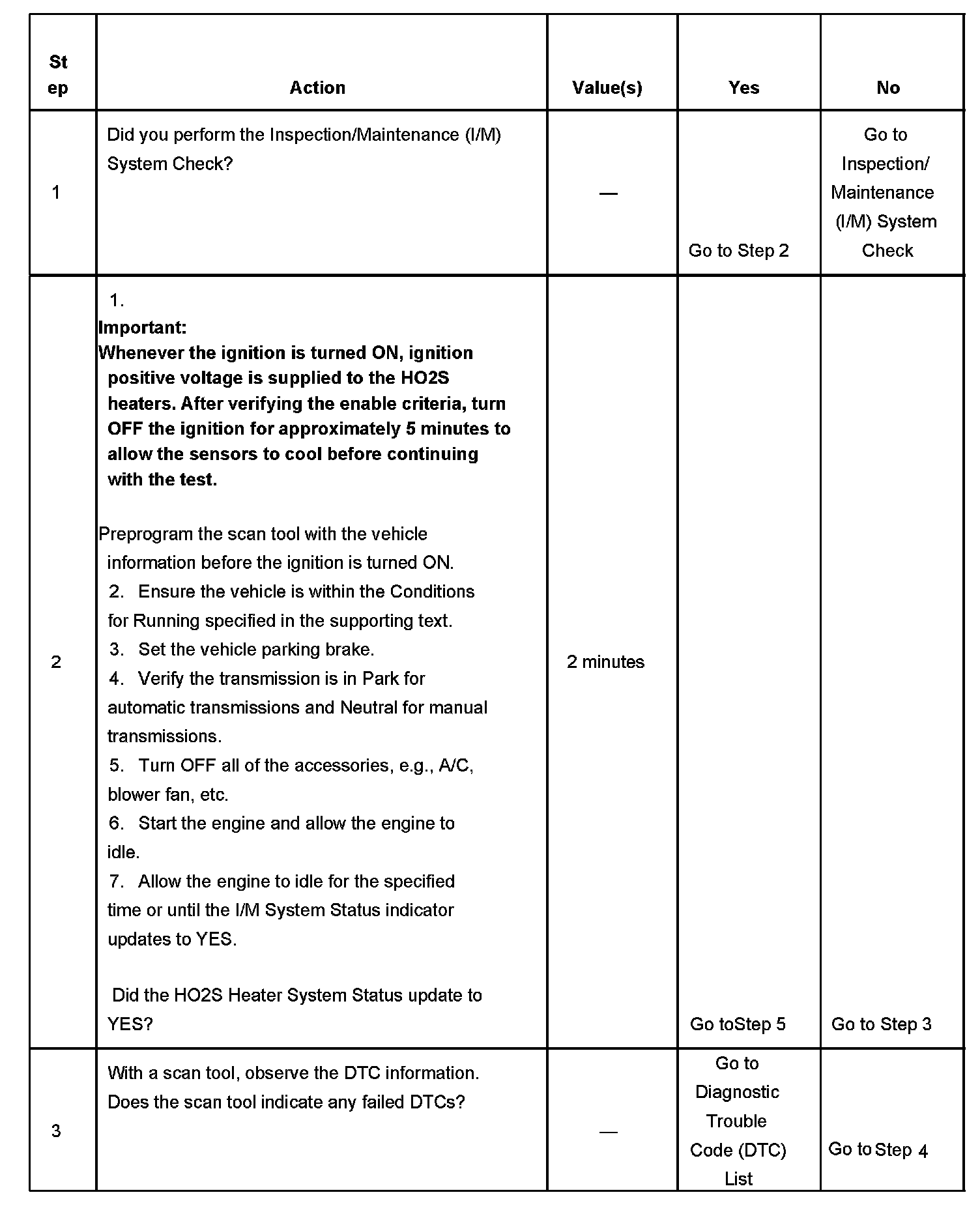 The purpose of this test is to satisfy the enable criteria necessary to execute I/M readiness diagnostics for the heated oxygen sensor (HO2S) system. The test may be used to set the I/M System Status to YES. Ensure the vehicle meets the requirements listed in Conditions for Running before performing this test. Failure to meet the necessary requirements may produce inaccurate test results.