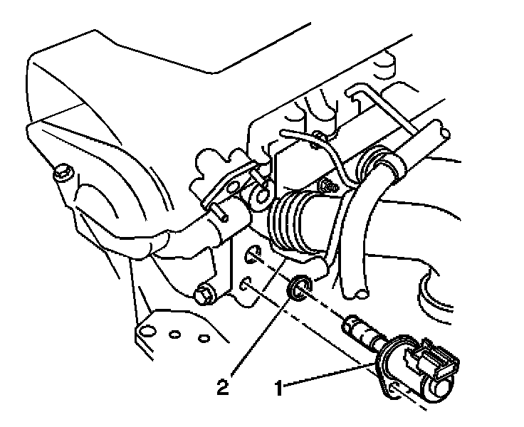 6. Remove the CMP actuator solenoid valve (1) and the O-ring (2) from the cylinder head.