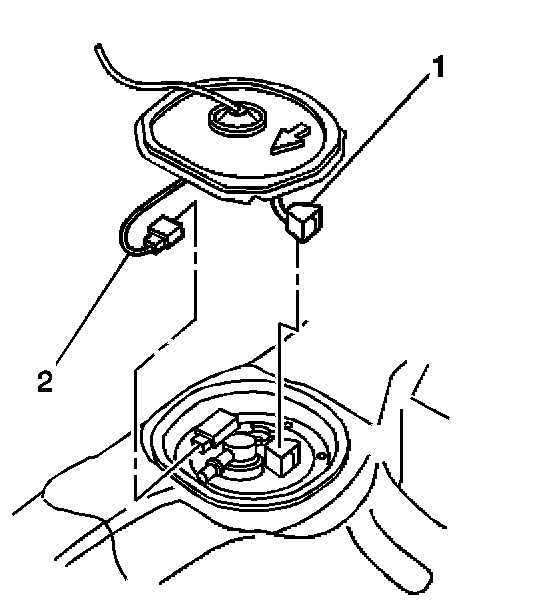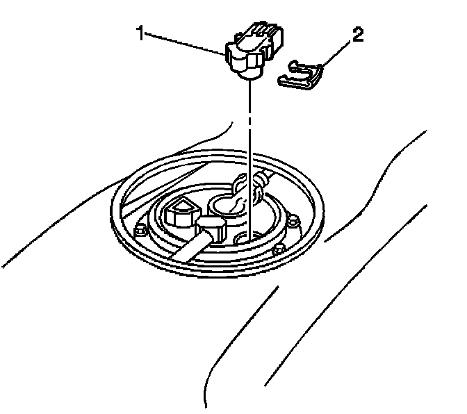 5. Disconnect the fuel sender electrical connector (2) from the fuel sender assembly.