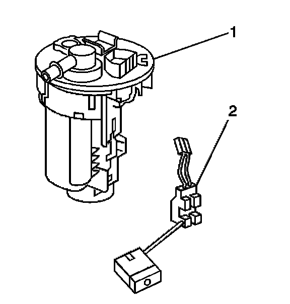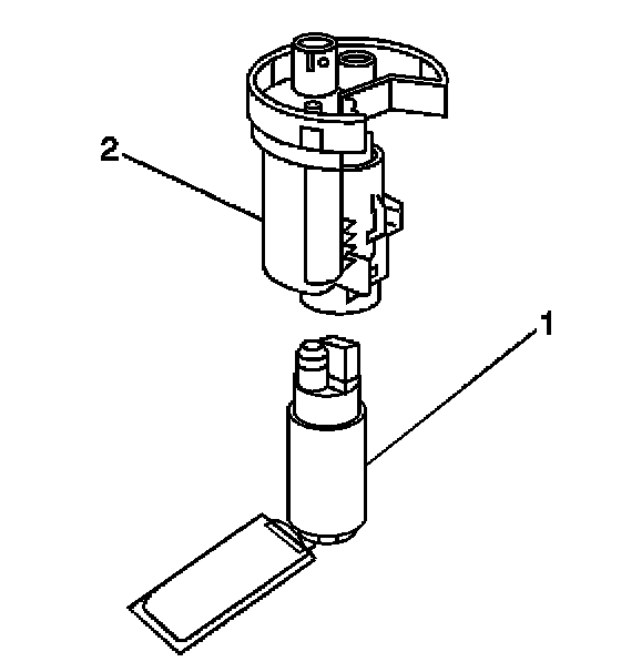 8. Remove the fuel pump (1) from the fuel filter assembly (2).