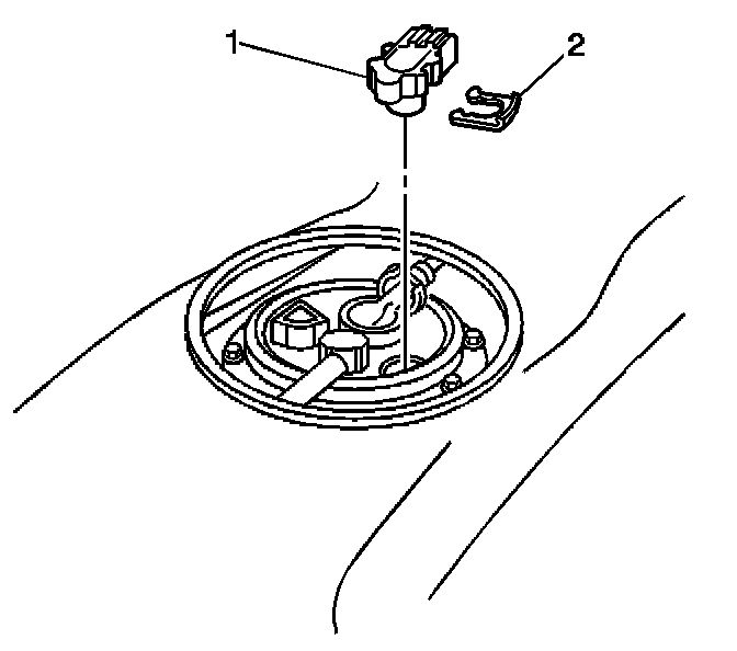 6. Disconnect the electrical connector of the fuel tank pressure (FTP) sensor (2) from the fuel sender assembly.