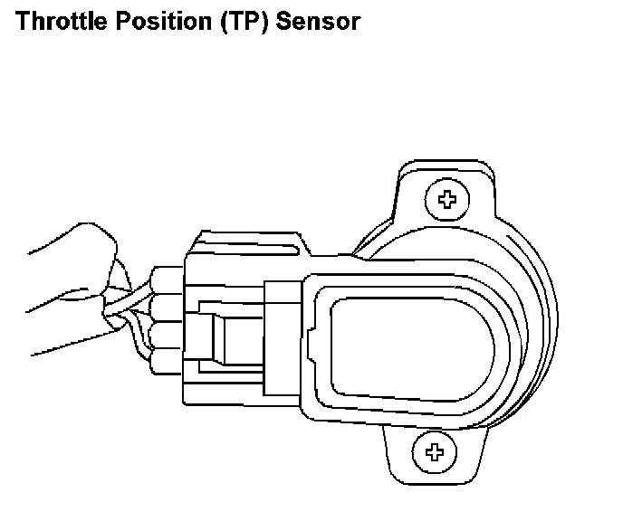 The throttle position (TP) sensor is a potentiometer connected to the throttle shaft on the throttle body. By monitoring the voltage on the signal line, the powertrain control module (PCM) calculates the throttle position. As the throttle valve angle changes when the accelerator pedal is moved, the TP sensor signal also changes. At a closed throttle position, the output of the TP sensor is low. As the throttle valve opens, the output increases so that at wide open throttle, the output voltage should be more than 3.3 volts.