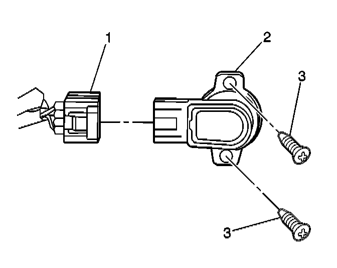 2. Remove the 2 fasteners (3) from the throttle position (TP) sensor (2).