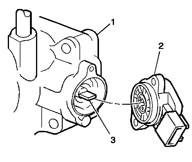 1. Align the throttle shaft (3) with the slot in the TP sensor (2).