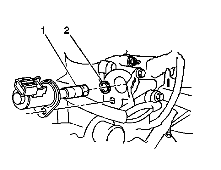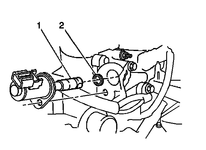 1. Install a new O-ring (2) and the rocker arm oil control solenoid valve (1) into the cylinder head.