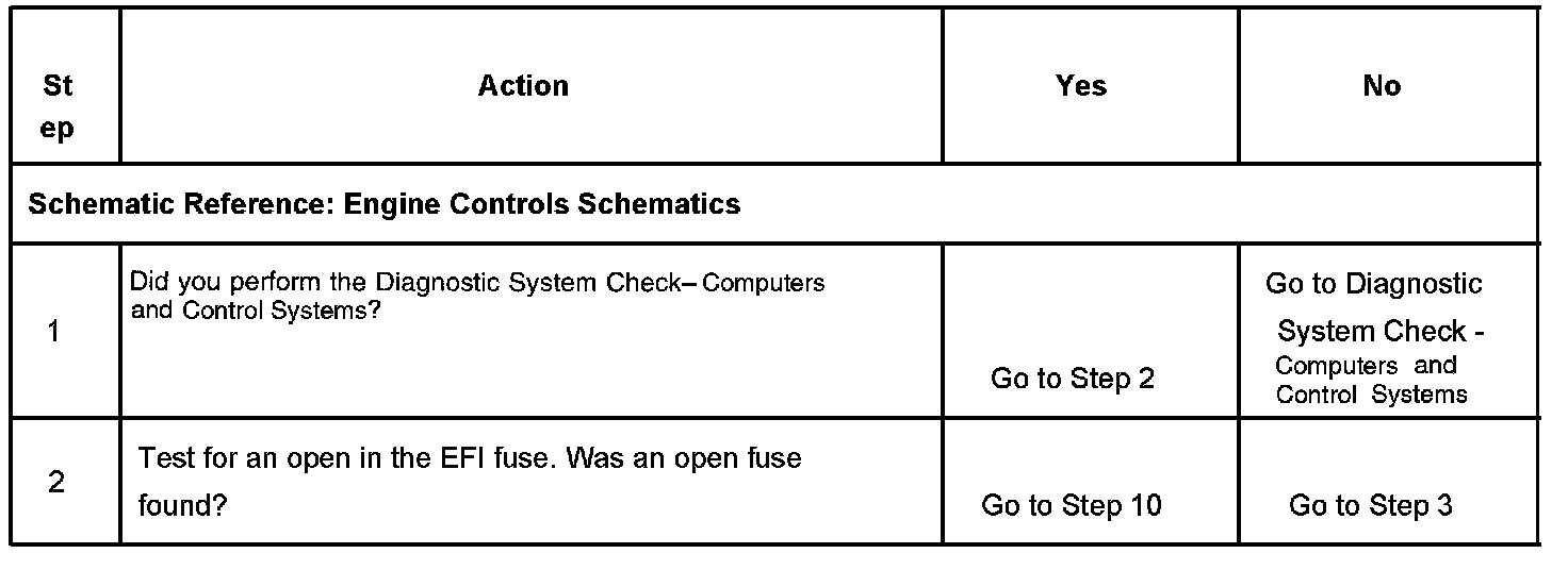 An intermittent malfunction may be caused by a fault in the EFI relay electrical circuit. Inspect the wiring harness and components for an intermittent condition. Refer to Intermittent Conditions. Intermittent Conditions