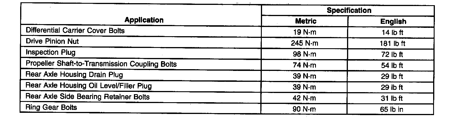 Fastener Tightening Specifications: