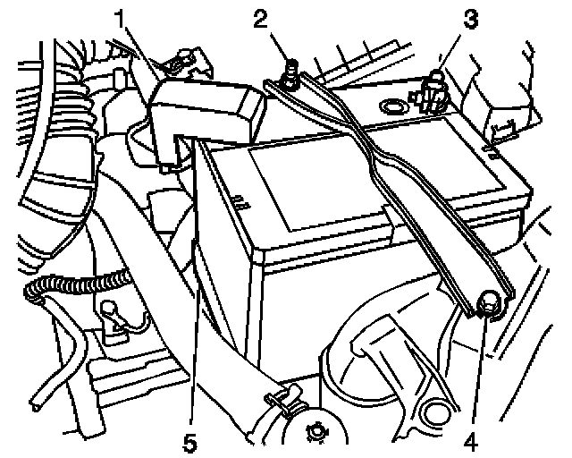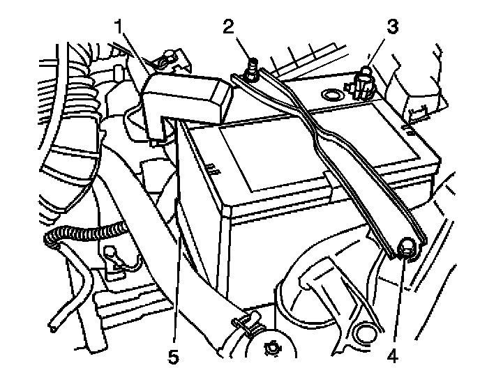 1. Install the battery (5) into the vehicle. Position the battery into the carrier.