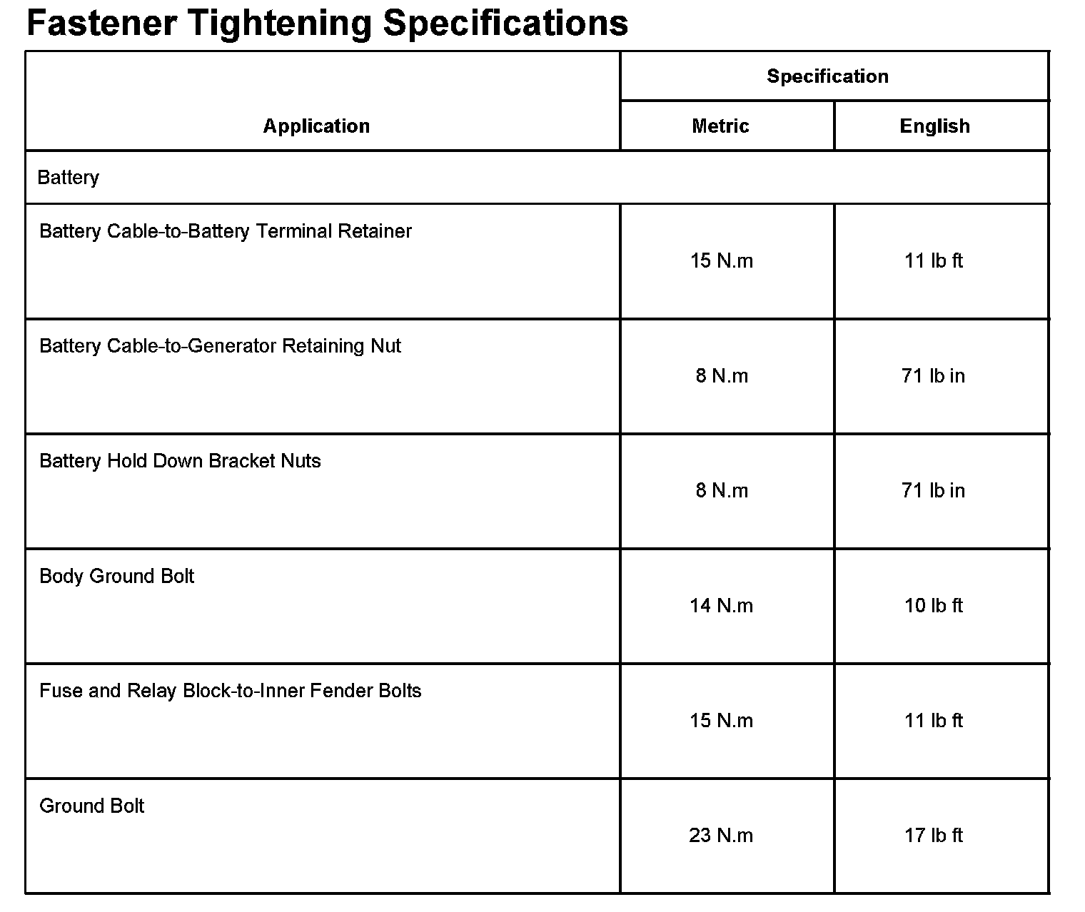 Fastener Tightening Specifications Part 1:
