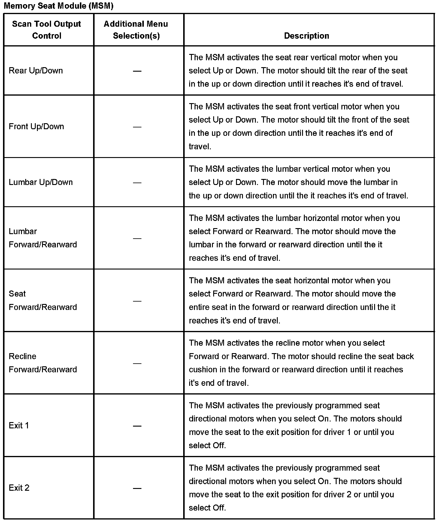 Memory Seat Module (MSM) Part 1: