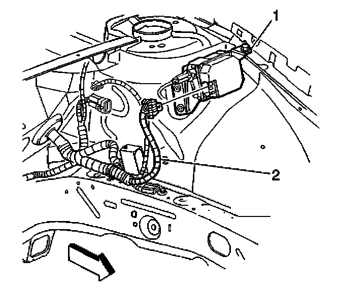 4. Remove the cruise control module and bracket assembly (2) from the vehicle.