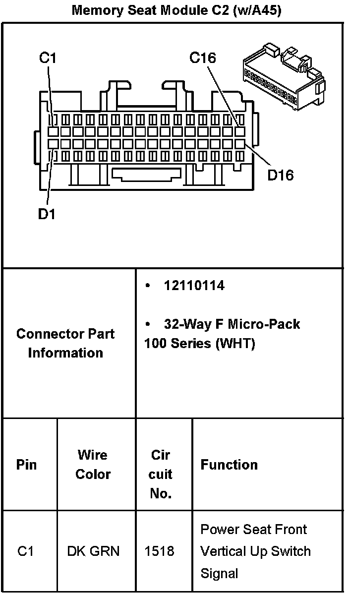 Memory Seat Module C2 (With RPO Code A45) Part 1:
