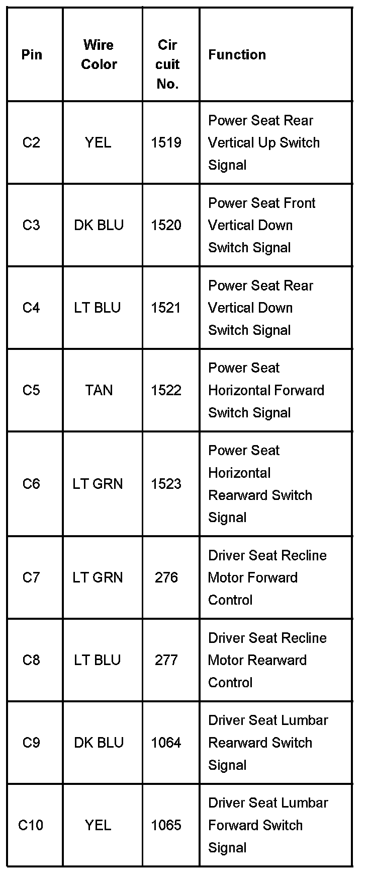 Memory Seat Module C2 (With RPO Code A45) Part 2: