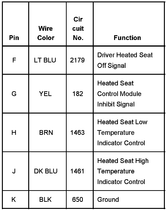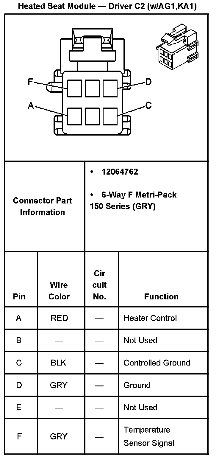 Heated Seat Module - Driver C1 (With RPO Codes AG1,A80,KA1) Part 2: