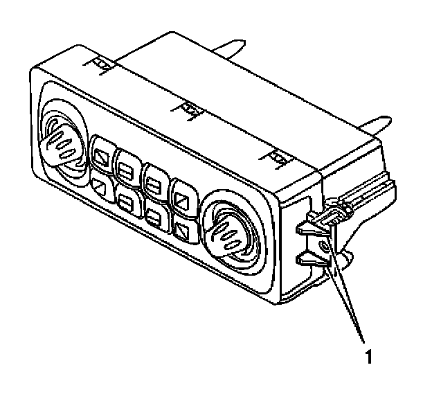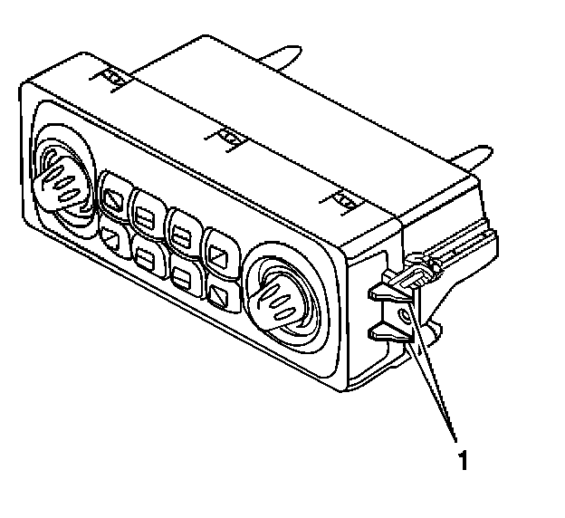 2. Pinch the tabs (1) on the control head and pull rearward on the HVAC control module to remove from the instrument panel.