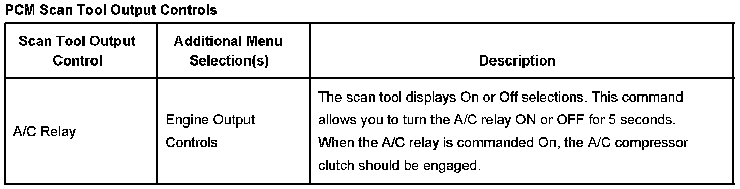 Scan Tool Output Controls - Powertrain Control Module (PCM)
