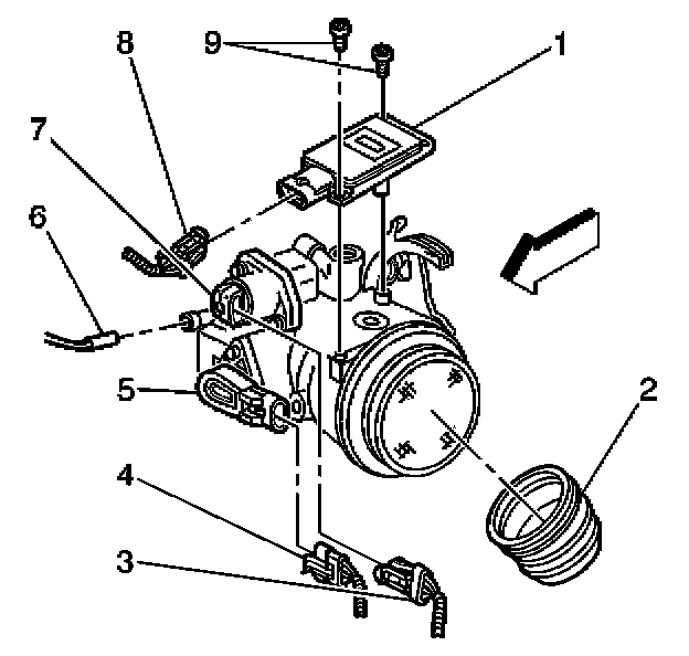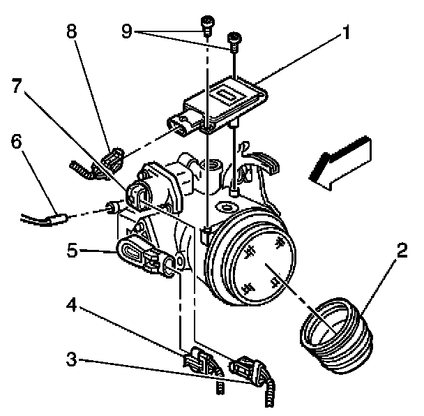 4. Remove the screws (9) that hold the MAF sensor to the throttle body.