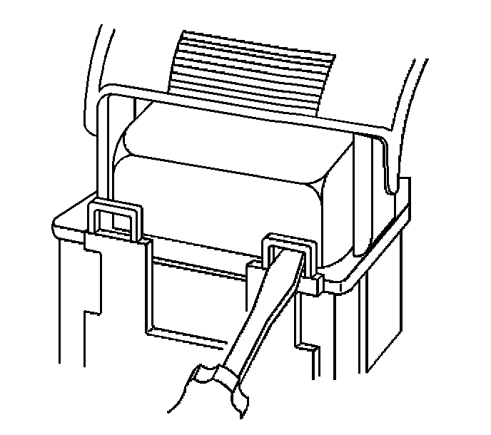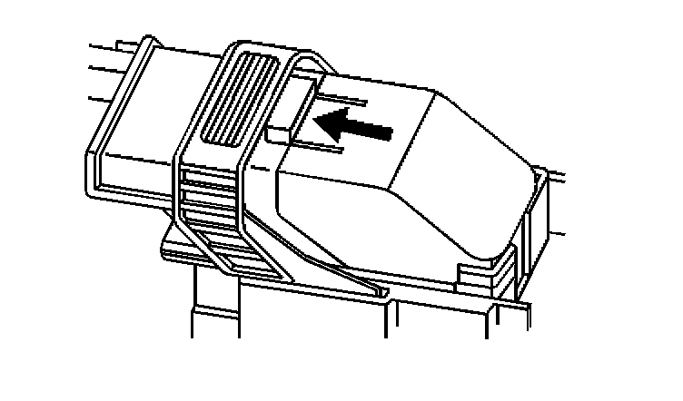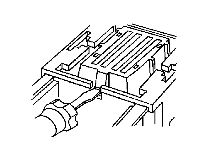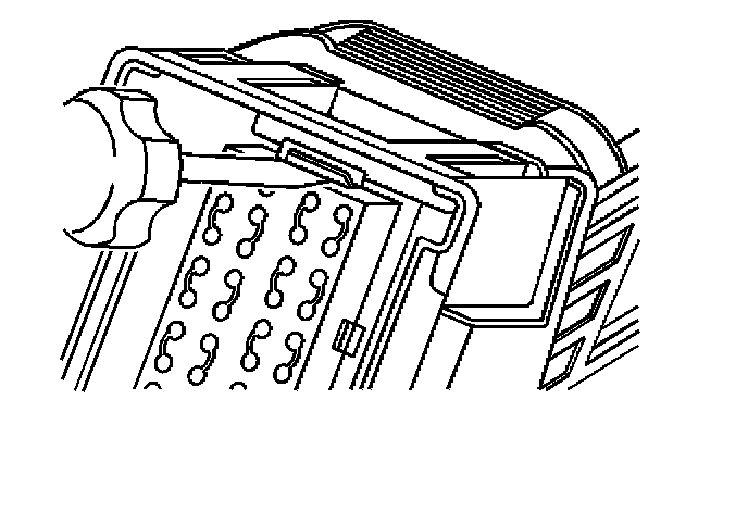 3. Locate the dress cover locking tabs at the front of the connector. Using a small flat-blade tool push down on one of the locking tabs and pull the cover up until the dress cover releases. Repeat this procedure for the other locking tab.