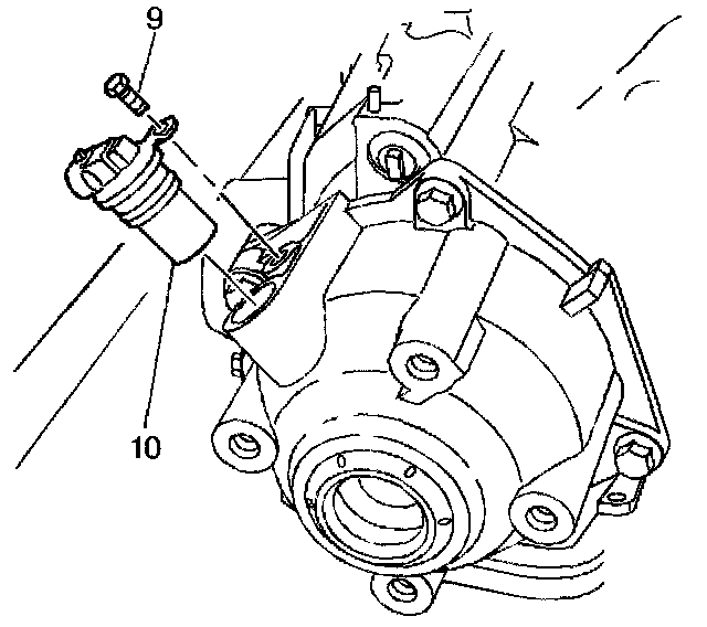 2. Install the vehicle speed sensor (10) and the retaining bolt (9).