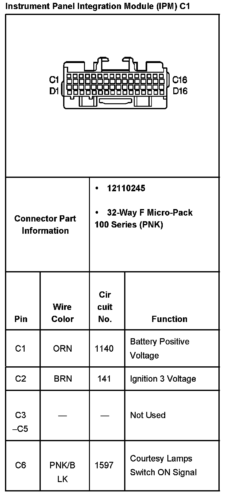Instrument Panel Integration Module (IPM) C1 Part 1: