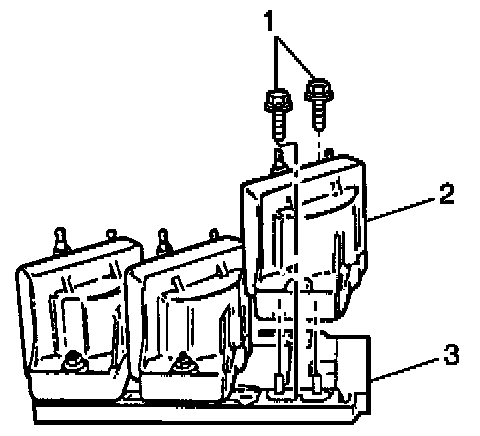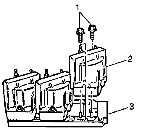 5. Remove the coils (2) and the ICM (3) from the bracket.